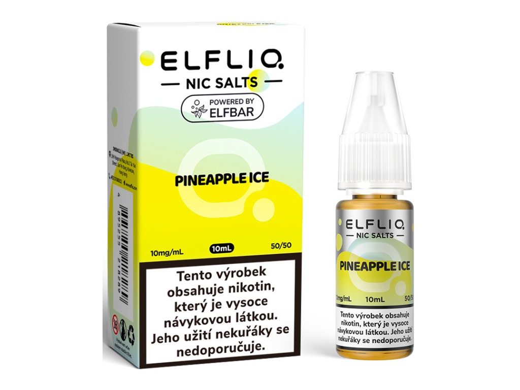 Skvělá chuť sladkého ananasu s ledem... Společnost Elf Bar je ve světě vapingu opravdovým fenoménem dnešní doby. Jejich jednorázové elektronické cigarety si našly miliony příznivců po celém světě, a to díky jejich nezapomenutelné a jedinečné chuti liquidu. Nyní si pro svoje fanoušky Elf Bar přichystal i samotný liquid ELFLIQ Nic SALT, který se od běžných liquidů odlišují tím, že má nižší PH a obsahuje nikotinovou sůl, díky které dochází k rychlejší a kvalitnější vstřebatelnosti = bez dráždivého pocitu v krku oproti klasickým liquidům. Vyvážený poměr 50VG/50PG je vhodný do všech typů elektronických cigaret.