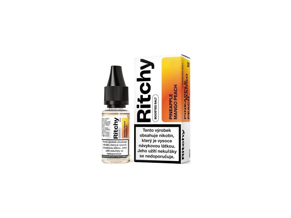 Exotická kombinace sladkých broskví, lahodného manga a exotického ananasu.... Vybalancované liquidy Ritchy s nikotinovou solí v poměru PG/VG 50:50.