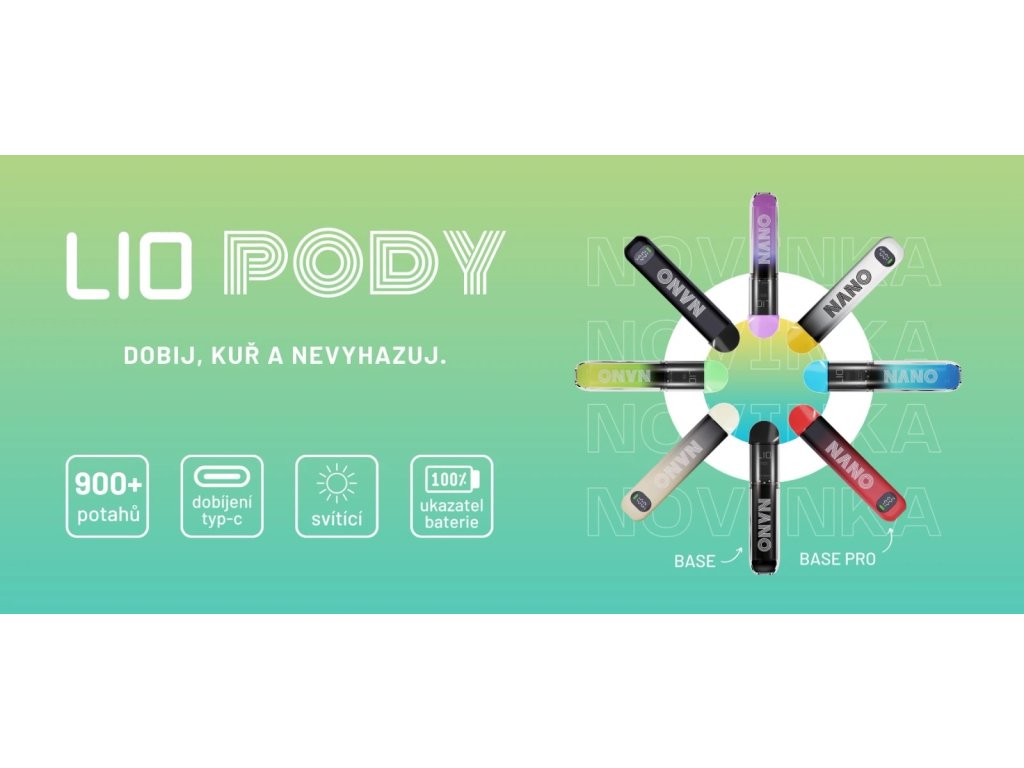 Kompaktní provedení a jednoduché použití dělá LIO POD dokonalým zařízením pro každodenní použití. Široká paleta barevných provedení nabíjecích základen spolu s 12-ti příchutěmi LIO POD umožňuje vytvořit dokonalou kombinaci přesně pro Vás!