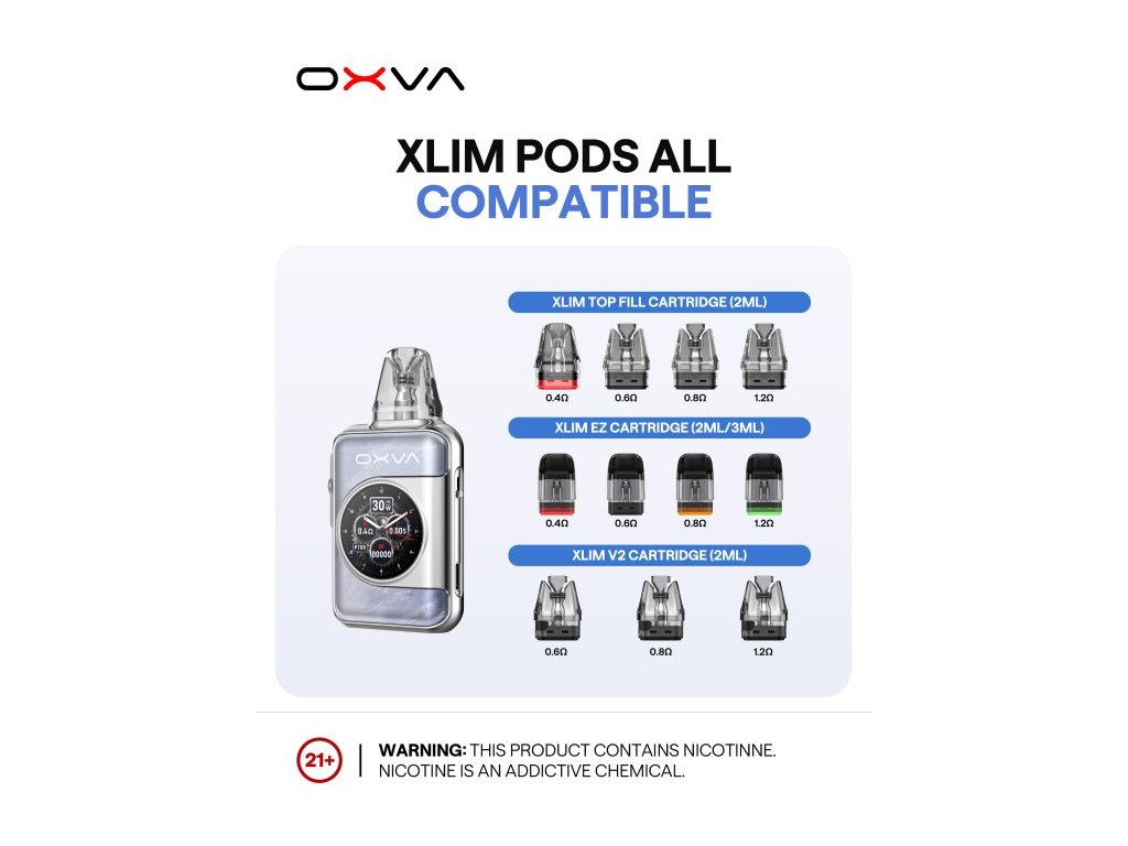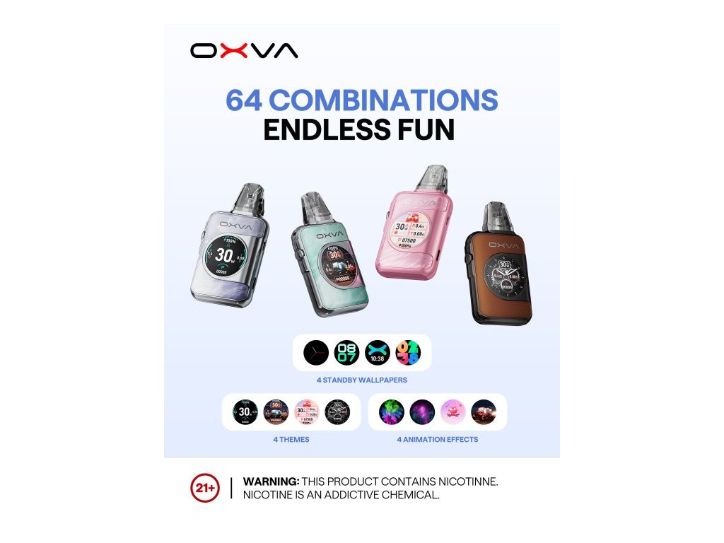 OXVA XLIM SQ PRO 2 představuje špičku mezi moderními pod systémy – elegantní zařízení, které v sobě spojuje technologické inovace a důraz na design. Díky dotykovému 1,09” HD displeji získáváte naprostou kontrolu nad svým vapováním: od přizpůsobení výkonu, sledování počtu potahů až po přístup k užitečným funkcím, jako je kalendář, svítilna nebo animace domovské obrazovky. Srdcem zařízení je výkonná vestavěná baterie o kapacitě 1600 mAh, která v ECO režimu zajistí provoz až na celý týden. Nabíjení probíhá skrze moderní USB-C konektor a plného dobití dosáhnete už za 45 minut. I přes své kompaktní rozměry nabízí XLIM SQ PRO 2 výdrž, která potěší i náročnější uživatele. Zařízení využívá cartridge z řady XLIM V2, V3 (Top Fill) i EZ, což zajišťuje skvělou kompatibilitu a široké možnosti výběru podle preferencí vapera. Díky technologii iCotton a preciznímu airflow systému si můžete být jisti věrnou chutí po celou dobu používání cartridge – až na 30 dní čisté chuti. Design přístroje navíc nezůstává pozadu – tělo je dostupné v několika stylových variantách, od decentních matných povrchů až po poutavé mramorové či lesklé motivy. Kompaktní rozměry, ergonomický tvar a kovový rám z něj dělají nejen výkonné, ale i velmi elegantní zařízení. OXVA XLIM SQ PRO 2 není jen vape. Je to osobní zážitek s dotekem luxusu, který se přizpůsobí vašemu životnímu stylu.