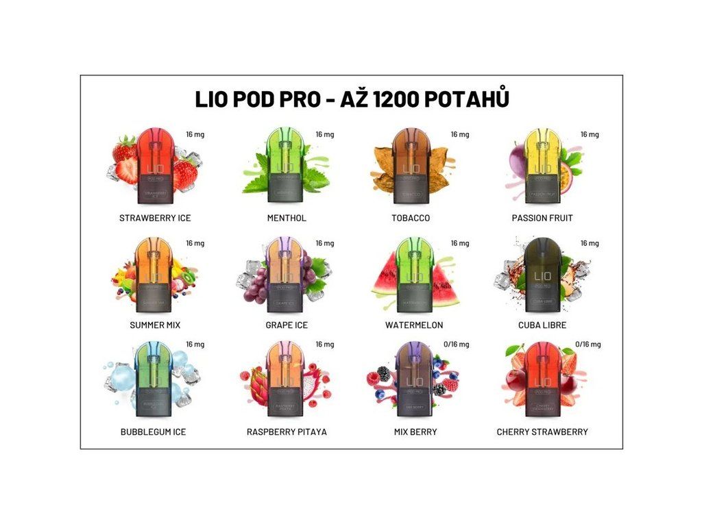 LIO POD PRO je prémiová vyměnitelná cartridge určená pro zařízení LIO BASE a LIO BASE PRO. Umožňuje pohodlné a kvalitní vapování bez starostí s plněním nebo údržbou. Stačí vložit do zařízení a užít si až 1200 potahů plných chuti.